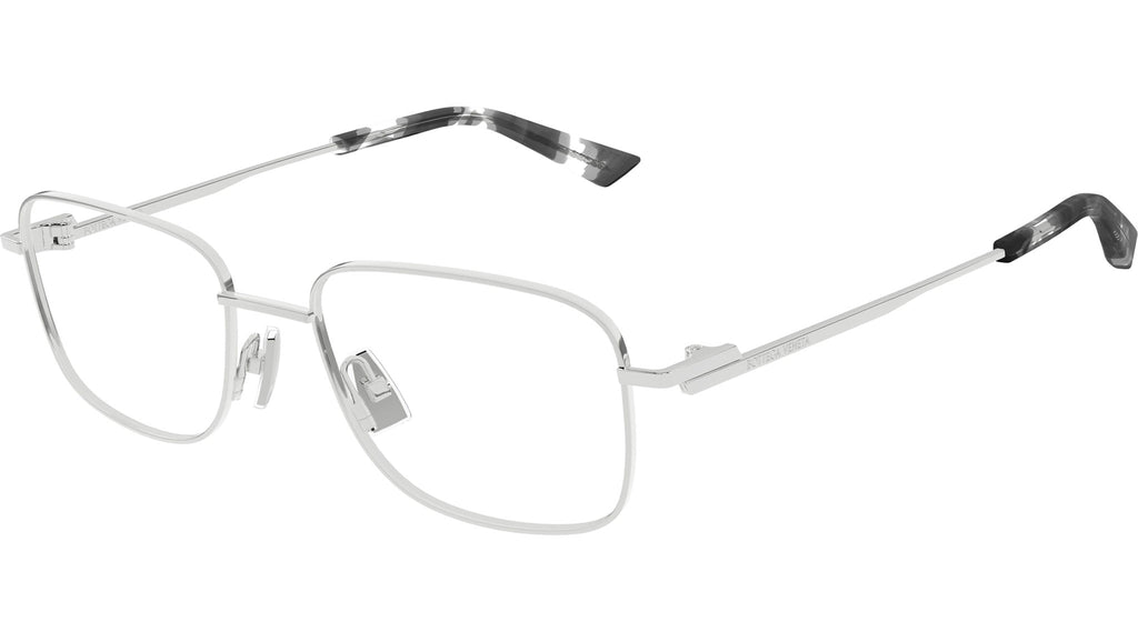 Occhiali da vista Bottega Veneta modello BV1333O in metallo forma rettangolare codice colore 002 argento lucido con lenti demo. Rivenditore autorizzato Bottega Veneta online. Gli occhiali vengono consegnati con custodia e accessori originali e sono coperti dalla garanzia ufficiale di 12 mesi del produttore.