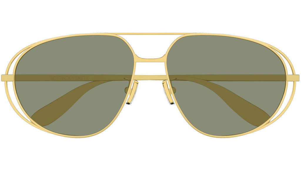 Occhiali da sole Bottega Veneta modello BV1344S in metallo forma aviatore codice colore 001 oro lucido con lenti color verde tinta unita. Rivenditore autorizzato Bottega Veneta online. Gli occhiali vengono consegnati con custodia e accessori originali e sono coperti dalla garanzia ufficiale di 12 mesi del produttore.