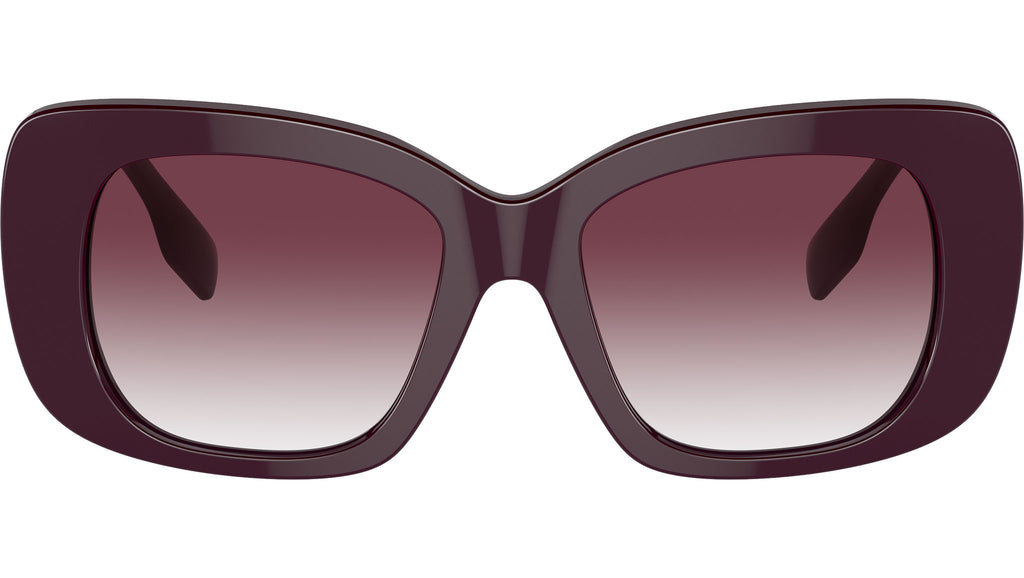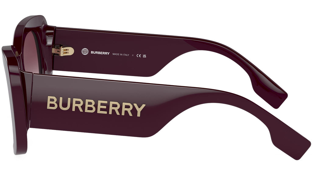 Occhiali da sole Burberry linea B. Logo Woman modello BE4410 codice colore 39798H con montatura full rim in acetato bordeaux e lenti in bio poliammide color viola scuro sfumato chiaro. Scopri l'essenza del più tradizionale stile britannico con gli occhiali da sole firmati Burberry, un'accattivante collezione eyewear di montature originali, da uomo e da donna. Burberry offre una selezione accurata di silhouette classiche e montature contemporanee, adatte a soddisfare le più diverse preferenze. Dagli eleganti modelli full-rim a quelli semi-rimless, la varietà di montature in acetato o in metallo esprime tutta la raffinatezza del brand. Fin dalla sua fondazione nel 1856, Burberry è il simbolo globale del lusso britannico, rinomato per il suo ricco patrimonio e la passione per la vita all'aria aperta. Oggi, guidata dal direttore creativo Daniel Lee, Burberry continua a ridefinire il panorama della moda, interpretando lo stile britannico moderno, con i suoi codici distintivi e i suoi modelli iconici.