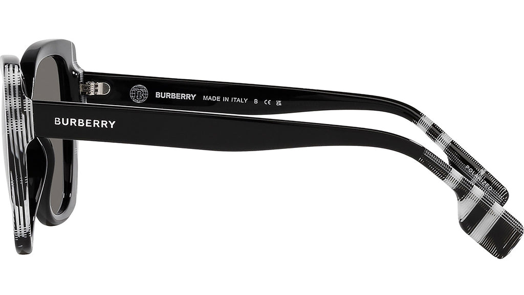 Occhiali da sole Burberry Meryl linea Classic Reloaded modello BE4393 codice colore 405181 con montatra full rim in acetato nero / bianco e nero e lenti in CR-39 color grigio scuro polarizzato. Scopri l'essenza del più tradizionale stile britannico con gli occhiali da sole firmati Burberry, un'accattivante collezione eyewear di montature originali, da uomo e da donna. Burberry offre una selezione accurata di silhouette classiche e montature contemporanee, adatte a soddisfare le più diverse preferenze. Dagli eleganti modelli full-rim a quelli semi-rimless, la varietà di montature in acetato o in metallo esprime tutta la raffinatezza del brand. Fin dalla sua fondazione nel 1856, Burberry è il simbolo globale del lusso britannico, rinomato per il suo ricco patrimonio e la passione per la vita all'aria aperta. Oggi, guidata dal direttore creativo Daniel Lee, Burberry continua a ridefinire il panorama della moda, interpretando lo stile britannico moderno, con i suoi codici distintivi e i suoi modelli iconici.