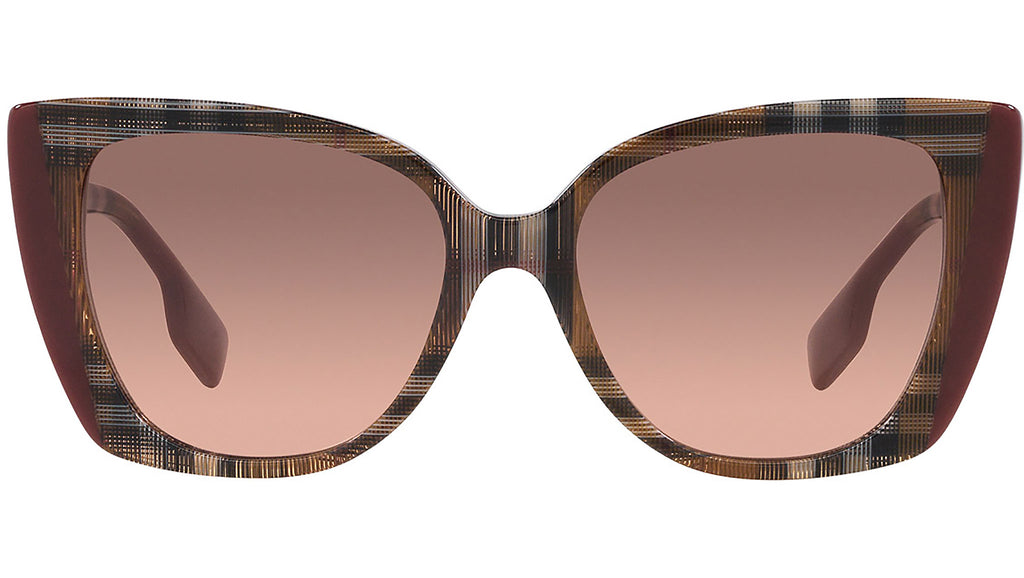 Occhiali da sole Burberry Meryl linea Classic Reloaded modello BE4393 codice colore 405413 con montatra full rim in acetato marrone / bordeaux e lenti in bio poliammide color rosa sfumato marrone scuro. Scopri l'essenza del più tradizionale stile britannico con gli occhiali da sole firmati Burberry, un'accattivante collezione eyewear di montature originali, da uomo e da donna. Burberry offre una selezione accurata di silhouette classiche e montature contemporanee, adatte a soddisfare le più diverse preferenze. Dagli eleganti modelli full-rim a quelli semi-rimless, la varietà di montature in acetato o in metallo esprime tutta la raffinatezza del brand. Fin dalla sua fondazione nel 1856, Burberry è il simbolo globale del lusso britannico, rinomato per il suo ricco patrimonio e la passione per la vita all'aria aperta. Oggi, guidata dal direttore creativo Daniel Lee, Burberry continua a ridefinire il panorama della moda, interpretando lo stile britannico moderno, con i suoi codici distintivi e i suoi modelli iconici.