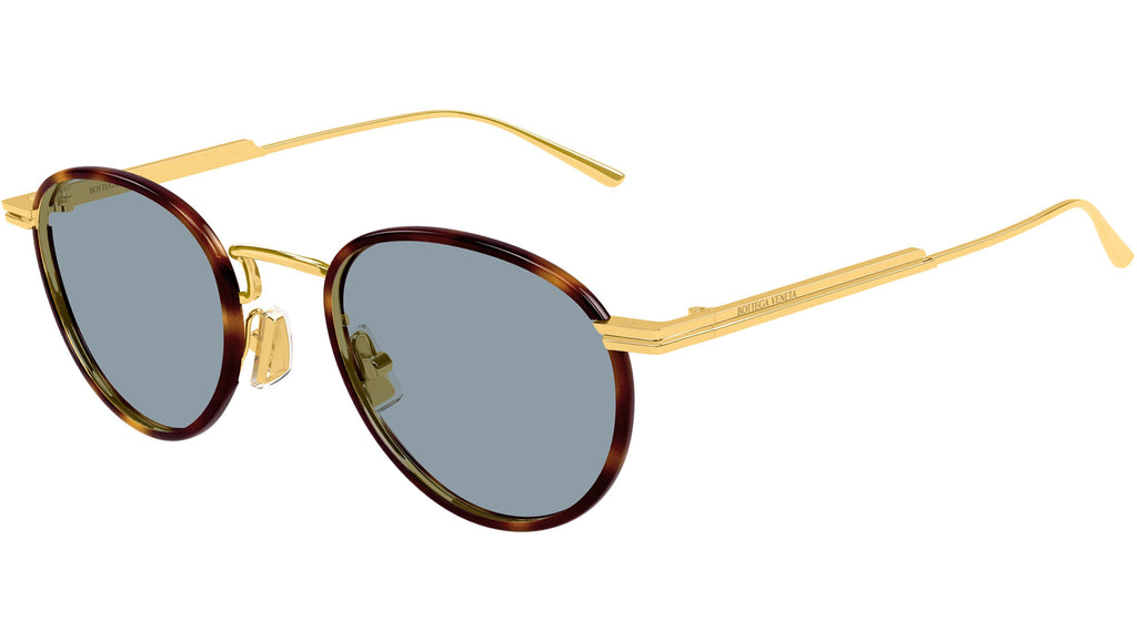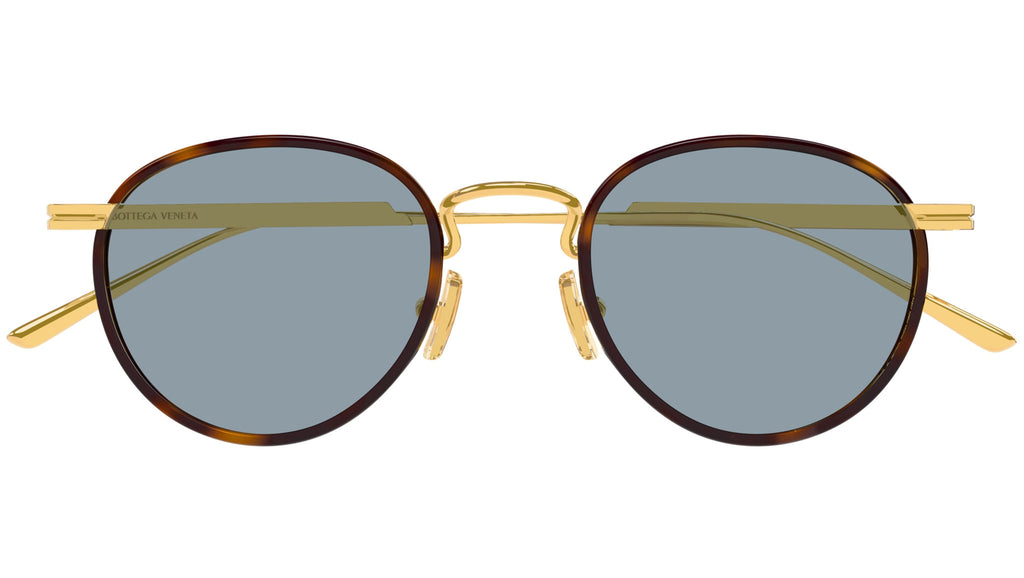 Occhiali da sole Bottega Veneta BV1389S 002 uomo con montatura pantos in metallo oro lucido, bordo windsor avana medio lucido e lenti blu tinta unita. Linea: Ribbon. Codice modello: BV1389S. Codice colore: 002. Made in Japan. Rivenditore autorizzato Bottega Veneta online. Gli occhiali vengono consegnati con custodia e accessori originali e sono coperti dalla garanzia ufficiale di 12 mesi del produttore.