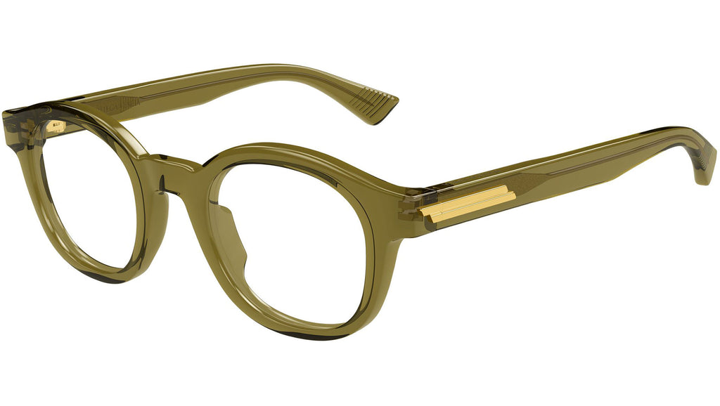 Occhiali da vista Bottega Veneta BV1413O 004 uomo con montatura pantos in acetato riciclato verde oliva vivido trasparente lucido e lenti demo. Linea: Ribbon. Codice modello: BV1413O. Codice colore: 004. Made in Japan. Rivenditore autorizzato Bottega Veneta online. Gli occhiali vengono consegnati con custodia e accessori originali e sono coperti dalla garanzia ufficiale di 12 mesi del produttore.