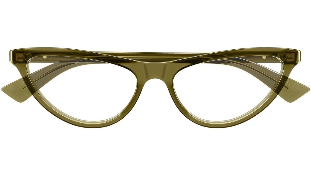 Occhiali da vista Bottega Veneta BV1416O 003 donna con montatura cat eye in acetato riciclato verde oliva vivido trasparente lucido e lenti demo. Linea: Ribbon. Codice modello: BV1416O. Codice colore: 003. Made in Italy. Rivenditore autorizzato Bottega Veneta online. Gli occhiali vengono consegnati con custodia e accessori originali e sono coperti dalla garanzia ufficiale di 12 mesi del produttore.