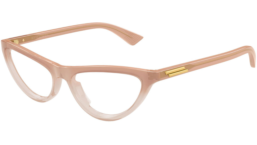 Occhiali da vista Bottega Veneta BV1416O 004 donna con montatura cat eye in acetato riciclato rosa opale sfumato lucido a rosa chiaro trasparente e lenti demo. Linea: Ribbon. Codice modello: BV1416O. Codice colore: 004. Made in Italy. Rivenditore autorizzato Bottega Veneta online. Gli occhiali vengono consegnati con custodia e accessori originali e sono coperti dalla garanzia ufficiale di 12 mesi del produttore.
