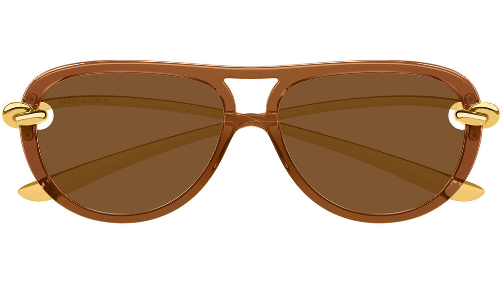Occhiali da sole Bottega Veneta BV1418S 004 donna con montatura aviatore in inietatto marrone pan di zenzero trasparente lucido e lenti marrone tinta unita. Linea: Signature Icons. Codice modello: BV1418S. Codice colore: 004. Made in Japan. Rivenditore autorizzato Bottega Veneta online. Gli occhiali vengono consegnati con custodia e accessori originali e sono coperti dalla garanzia ufficiale di 12 mesi del produttore.
