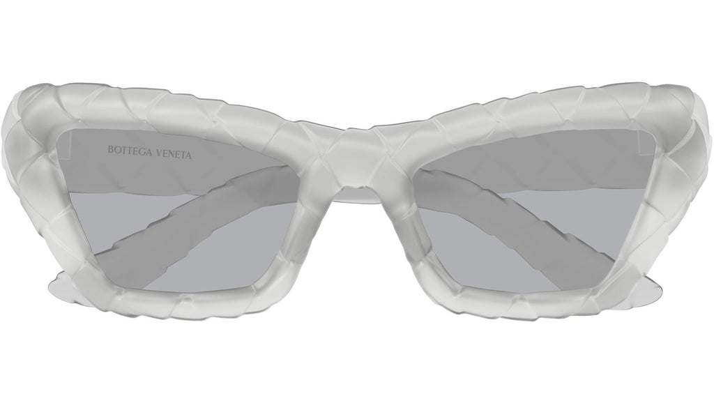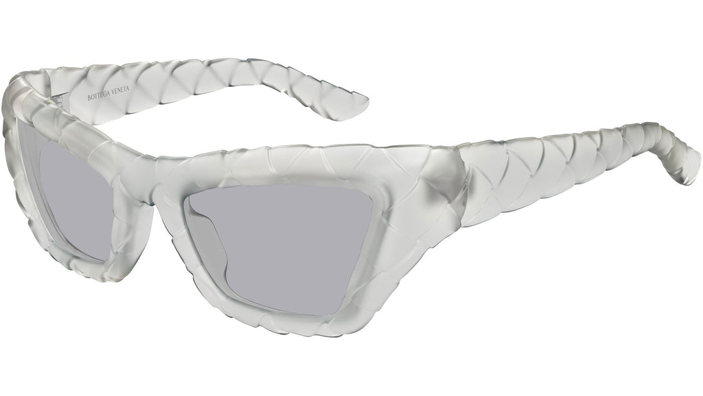 Occhiali da sole Bottega Veneta BV1438S 004 donna con montatura cat eye in inietatto grigio chiaro trasparente soft touch e lenti blu tinta unita. Linea: Signature Icons. Codice modello: BV1438S. Codice colore: 004. Made in Japan. Rivenditore autorizzato Bottega Veneta online. Gli occhiali vengono consegnati con custodia e accessori originali e sono coperti dalla garanzia ufficiale di 12 mesi del produttore.