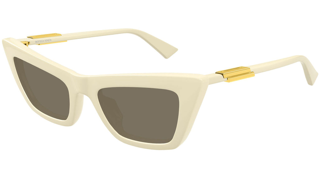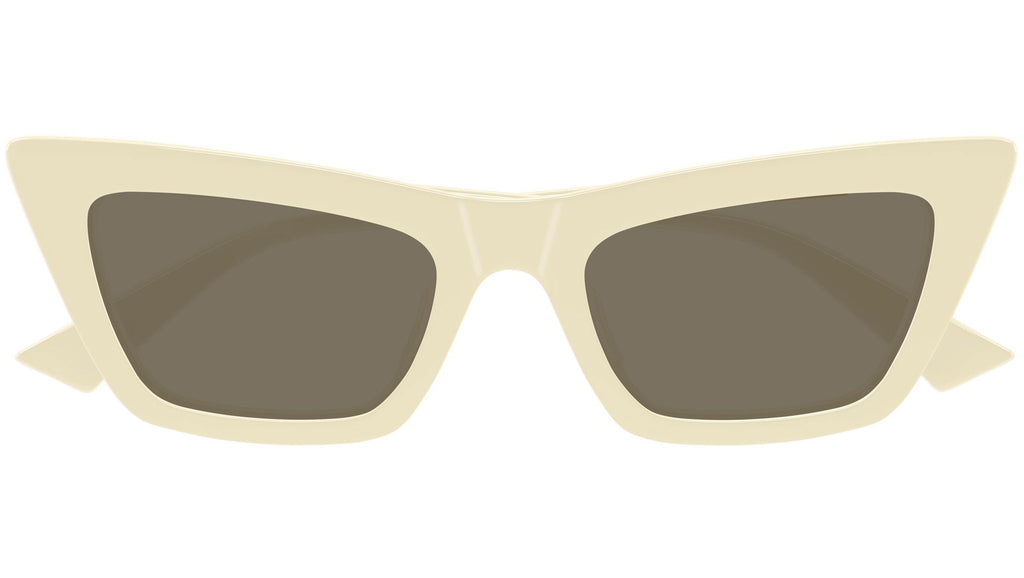 Occhiali da sole Bottega Veneta BV1446S 004 donna con montatura cat eye in acetato riciclato avorio burro solido lucido e lenti marrone tinta unita. Linea: Ribbon. Codice modello: BV1446S. Codice colore: 004. Made in Italy. Rivenditore autorizzato Bottega Veneta online. Gli occhiali vengono consegnati con custodia e accessori originali e sono coperti dalla garanzia ufficiale di 12 mesi del produttore.