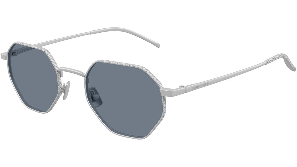 Occhiali da sole Bottega Veneta BV1471S 004 unisex con montatura pantos in titanio argento antico semilucido e lenti azzurro tinta unita. Linea: Intrecciato. Codice modello: BV1471S. Codice colore: 004. Made in Japan. Rivenditore autorizzato Bottega Veneta online. Gli occhiali vengono consegnati con custodia e accessori originali e sono coperti dalla garanzia ufficiale di 12 mesi del produttore.