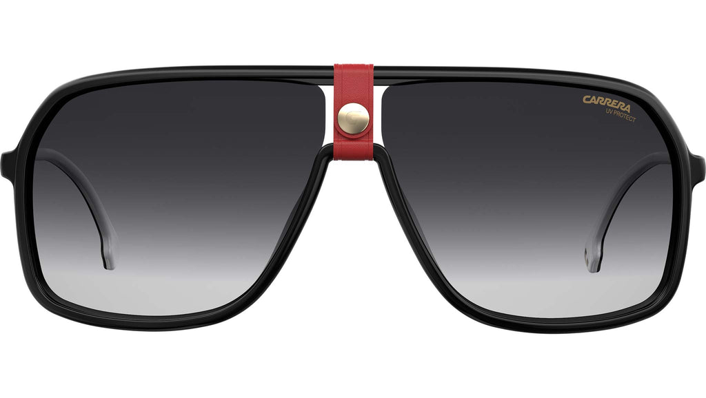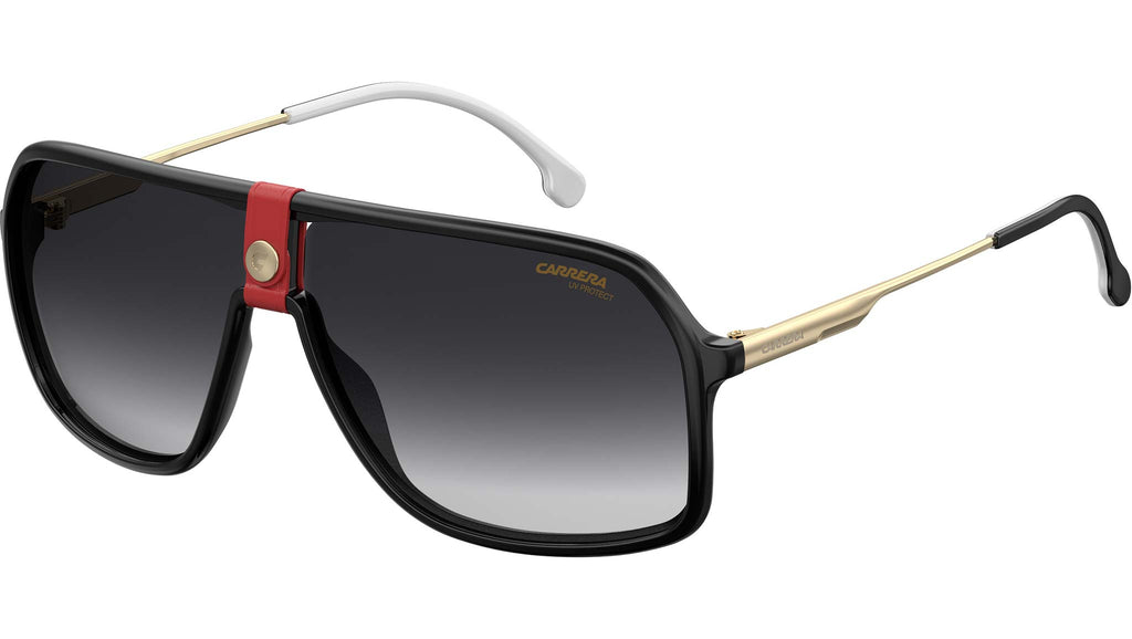 Questi grintosi occhiali da sole da uomo modello aviator celebrano sia le origini che il futuro Carrera. Caratterizzata da una nuova interpretazione dell’iconica firma del brand – il logo-C in pelle, discreto ma dal design deciso – questa versione olor oro è sicuramente una scelta distintiva. La montatura e la parte iniziale delle aste sono realizzate in plastica modellata ad iniezione, con il logo inciso sulle aste in metallo e le lenti sfumate aggiungono un tocco ricercato al design robusto.