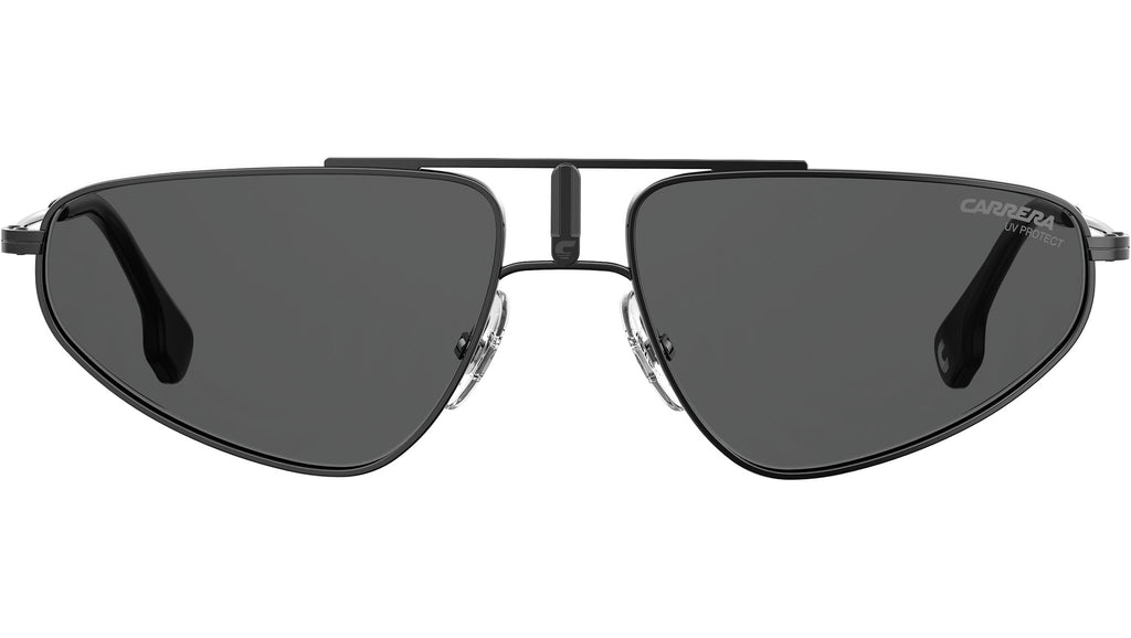 Occhiali da sole Carrera modello 1021/S colore V81 dark ruthenium black. La costante ispirazione all’eredità estetica Carrera è sicuramente uno dei tratti distintivi del brand, che con questa nuova collezione riprende alcuni modelli iconici e dettagli di stile degni di nota. Questi occhiali da sole da donna in metallo nero hanno una forma triangolare, sottile e allungata, con lenti nere che donano un fascino contemporaneo alla montatura. Completato da terminali in acetato e dall’immancabile logo-C sul frontale, questo modello inedito reinterpreta i dettami del brand in chiave moderna, aggiungendo un tocco trendy al mix.