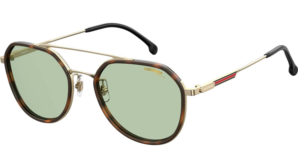 Questi occhiali da sole combinano un’estetica pulita con dettagli precisi per un effetto attuale e d’impatto. La montatura tonda è caratterizzata da una struttura a doppio strato, in cui l’acetato lucido è racchiuso in un sottile strato di metallo spazzolato per un elegante contrasto di texture. Il tema continua con l’iconica bandiera smaltata sulle tempie e terminali ricoperti in acetato, così come le lenti colorate, disponibili in varianti fotocromatiche e a specchio.