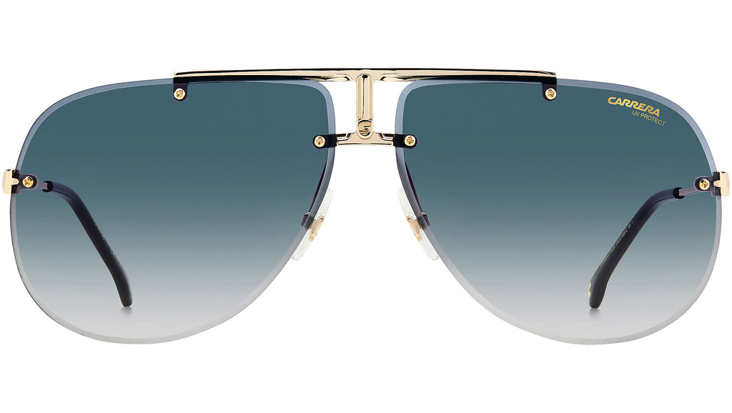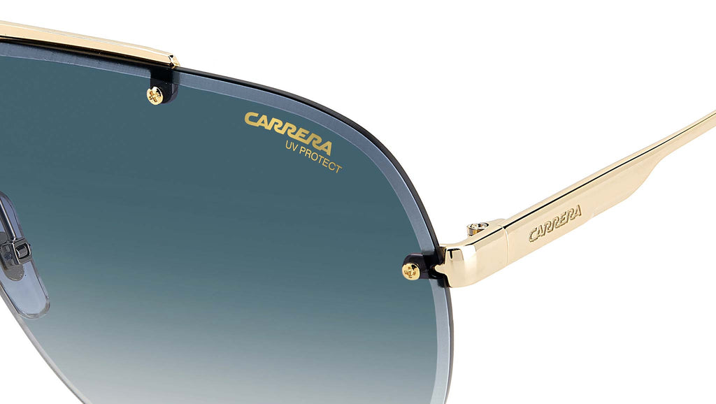 A reinvented classic - these uniesx sunglasses feature a bold pilot frame and a flat double nose bridge that gives it an edge. A rimless update on the timeless teardrop shape, the unique construction is rendered in sturdy, polished metal for durability and accented with the brand’s logo on the temples. Available with gradient and solid lenses, it’s a must-have model for any style connoisseur.