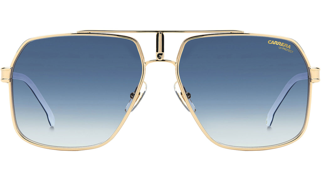 Occhiali da sole Carrera modello 1055/S colore J5G 08 gold. Questi occhiali da sole per uomo trasformano le signature tipiche Carrera in elementi accattivanti. Il profilo in metallo è iconico con il suo gioco di pieni e di vuoti, dati dal doppio ponte e la placca con la "C". Anche le aste sanno distinguersi, grazie al design scolpito, il logo in altorilievo e i terminali lunghi in acetato. Le lenti squadrate sono disponibili in versione sfumata, polarizzata oppure Ultrapolar con coating dorato.