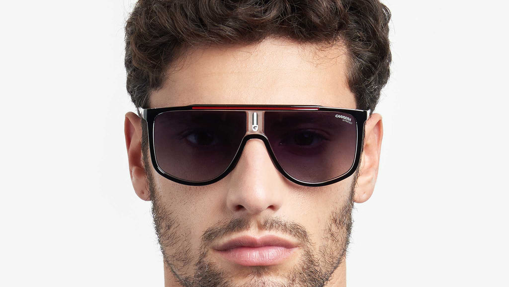 Occhiali da sole Carrera modello 1056/S colore OIT 9O black red. Ritornano alle origini dello stile Carrera questi occhiali da sole con silhouette bold, dal forte impatto visivo. Le maxi-lenti sono protagoniste, esasperate dall’inserto cromatico sul flat-top e dalla placca centrale con la “C” Carrera. Le aste in metallo con il logo lettering e la bandiera a contrasto completano questo modello dall’identità distintiva, disponibile anche in versione polarizzata.