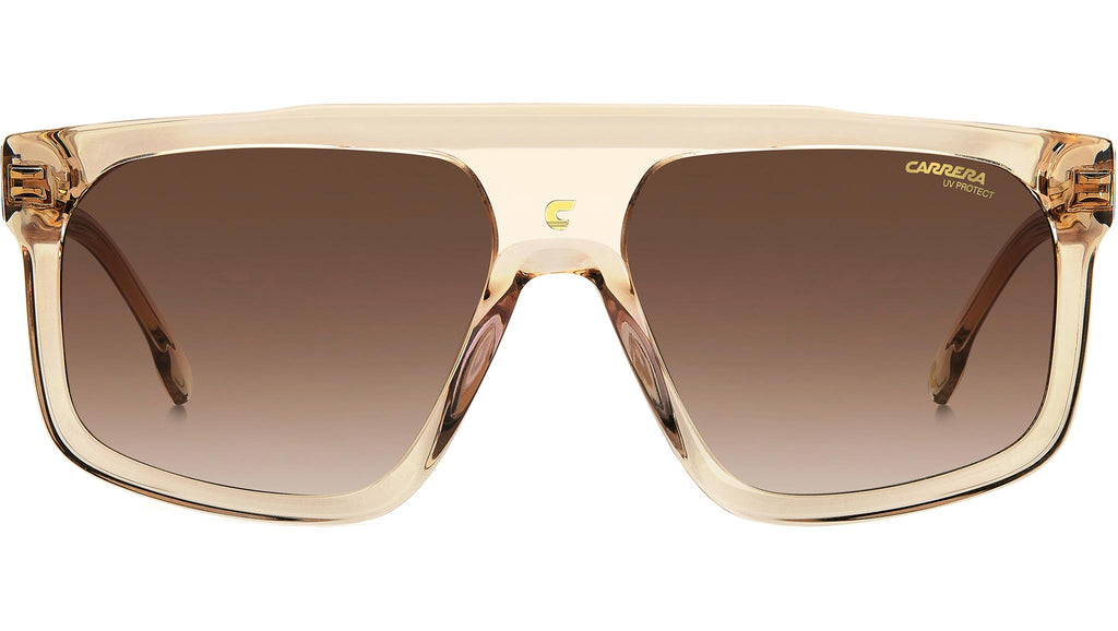 Occhiali da sole Carrera modello 1061/S colore 10A HA beige. Carrera guarda alle sue più iconiche cifre stilistiche per occhiali da sole che aprono la strada alle nuove tendenze. I trend-setter ameranno questo modello in acetato con frontale flat-top e un gioco di trasparenze che esalta la “C” posta al centro. Carrera lo propone anche nella versione con l’anima lavorata ben visibile attraverso aste. Il modello può montare lenti graduate ed è disponibile con lenti specchiate o polarizzate.