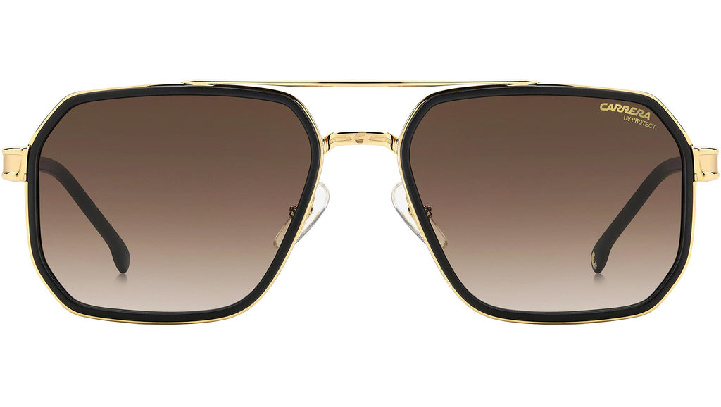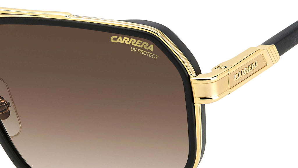 Occhiali da sole Carrera modello 1069/S colore I46 86 matte black gold. L’essenza più iconica di Carrera è espressa da questi occhiali da sole dal design rifinito e dal carattere riconoscibile. Il frontale è in metallo, esaltato dal rivestimento iniettato e dallo spoiler laterale. Sul ponte è incisa la “C” Carrera, mentre il logo esteso è scolpito sulle aste. Il modello può montare lenti graduate. La versione con lenti specchiate regala un’ulteriore dose di grinta, quella con lenti polarizzate una maggiore protezione.