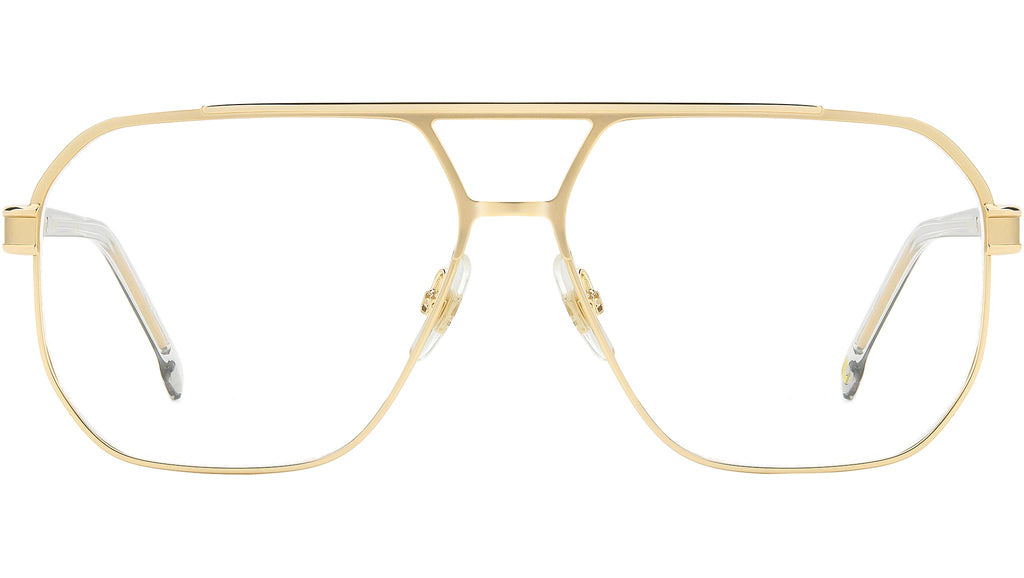 Occhiali da vista Carrera modello 1135 colore J5G gold. Tutto il meglio della storia e della qualità Carrera in un occhiale da vista emblematico e riconoscibile. La leggendaria forma navigator con doppio ponte è l’elemento che rende questo modello un’icona. Le aste presentano il logo Carrera in rilievo e terminali lunghi in acetato, anche in versione trasparente con anima a vista. La calzata è piacevole grazie alla struttura leggera in metallo, alle cerniere flessibili e ai naselli regolabili.