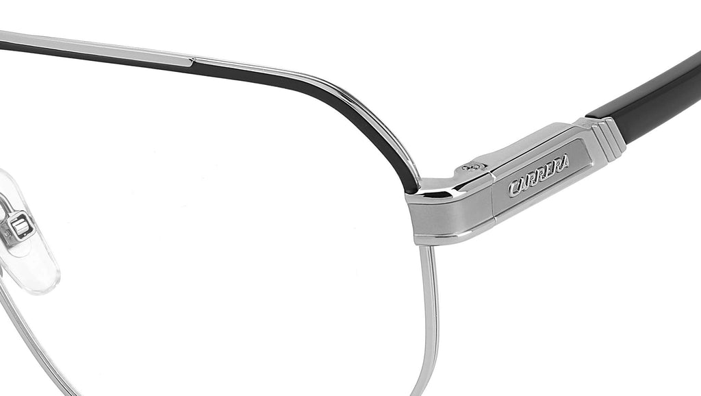 Occhiali da vista Carrera modello 1135 colore RZZ matte black dark ruthenium. Tutto il meglio della storia e della qualità Carrera in un occhiale da vista emblematico e riconoscibile. La leggendaria forma navigator con doppio ponte è l’elemento che rende questo modello un’icona. Le aste presentano il logo Carrera in rilievo e terminali lunghi in acetato, anche in versione trasparente con anima a vista. La calzata è piacevole grazie alla struttura leggera in metallo, alle cerniere flessibili e ai naselli regolabili.