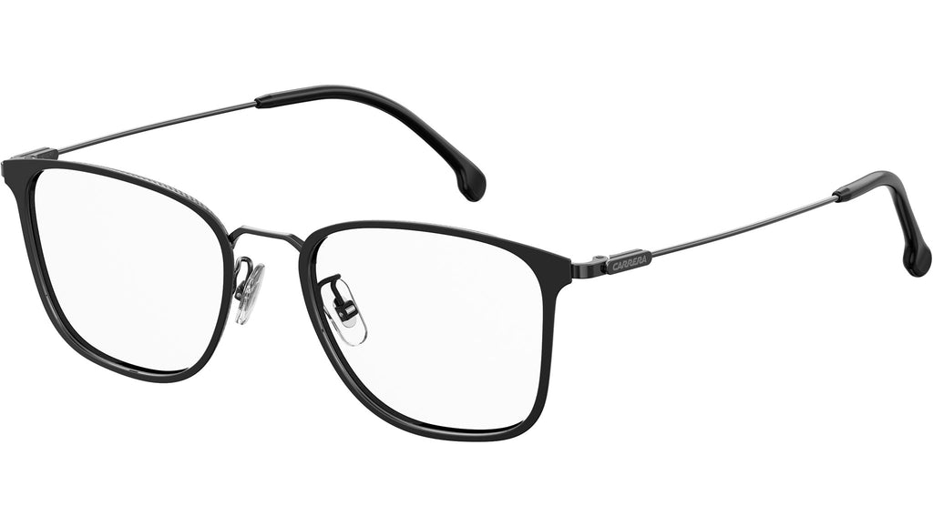 Occhiali da vista Carrera modello 192/G colore V81 dark ruthenium black. La collezione eyewear Carrera Primavera/Estate 2019 presta grande attenzione sia alla forma che alla funzione, introducendo un nuovo materiale di costruzione, il Memory Metal. Progettato per garantire massimo comfort e flessibilità, nonché un look di tendenza, è un materiale durevole, leggero e resistente, che anche se flesso, piegato e ritorto, ritorna sempre alla sua forma originale. Questi occhiali da vista rettangolari racchiudono il miglior mix di stile e praticità – che si notano nel profilo sottile e pulito e nell’immancabile firma Carrera su ogni asta. Le aste in acetato e i naselli regolabili garantiscono la massima aderenza e una volta aggiunte le lenti graduate, diventeranno il perfetto paio di occhiali per un look da tutti i giorni.