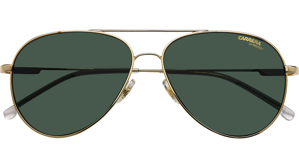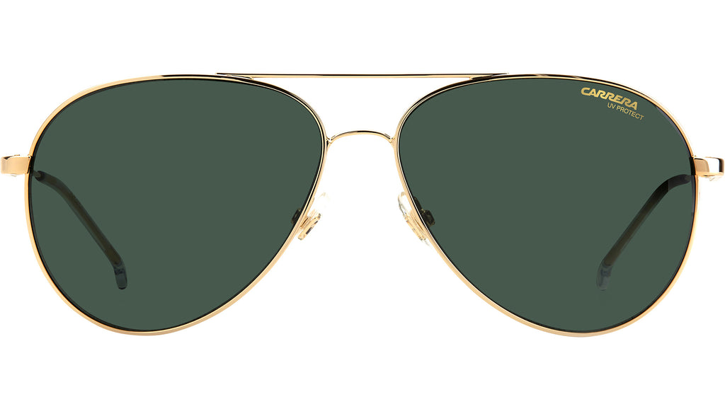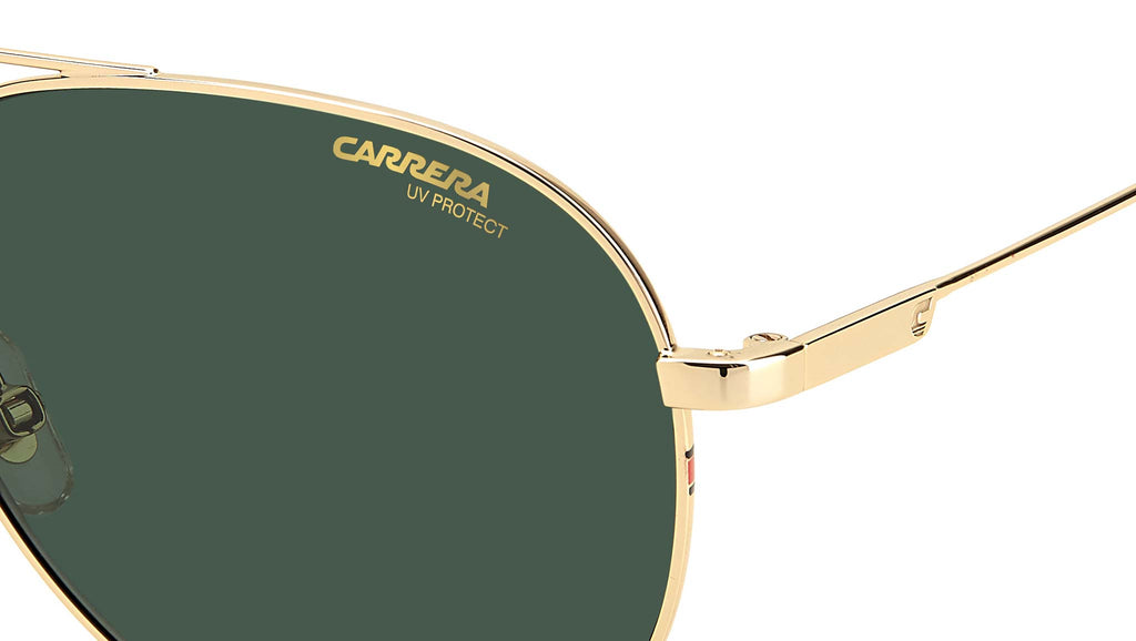 Occhiali da sole Carrera modello 2031T/S colore J5G gold. I classici codici stilistici Carrera aggiornati con un tocco attuale – questi occhiali da sole per teenager sono la scelta perfetta tutto l’anno. L’iconica silhouette aviatore con il distintivo doppio ponte è scolpita in leggero metallo e decorata con il logo del brand sulla lente sinistra e le tempie. I terminali in acetato e i naselli in silicone regolabili assicurano il comfort ottimale.