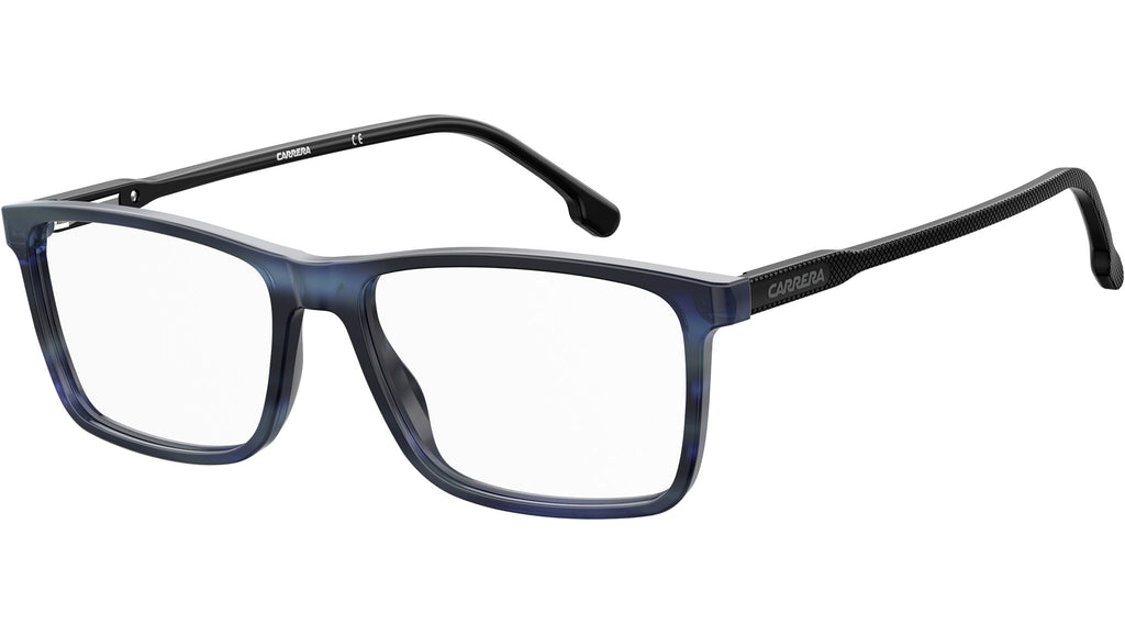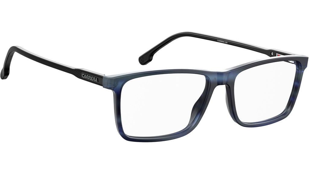 Occhiali da vista Carrera modello 225 colore AVS striped blue. Questi occhiali da vista da uomo sono destinati a diventare i preferiti, grazie alla loro classica montatura rettangolare e alla leggera costruzione in acetato. Il frontale dal profilo rettangolare è abbinato a sottili aste impreziosite dal tocco della nuovissima texture “griglia” di Carrera – un dettaglio discreto eppure distintivo – per un look davvero unico.