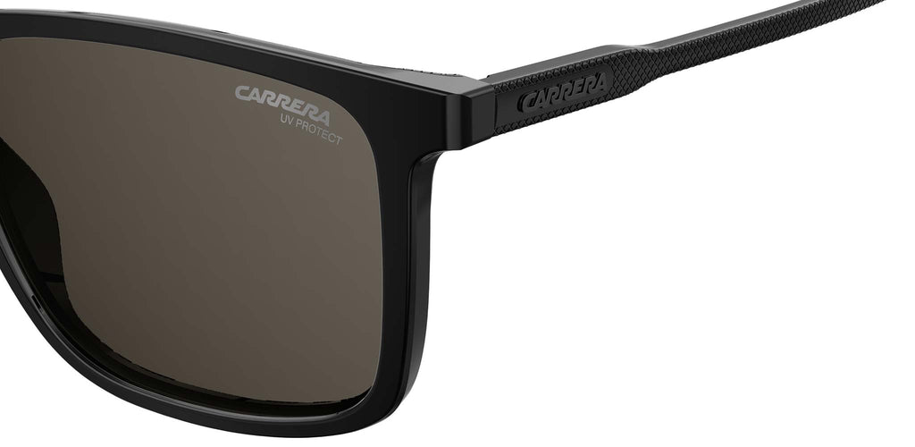 Occhiali da sole Carrera modello 231/S colore 807 black. Questi occhiali da sole unisex elevano il classico profilo squadrato grazie alla nuovissima texture “griglia” di Carrera, che impreziosisce le aste, la barra superiore e la parte interna del frontale, per un tocco distintivo. Il doppio ponte presenta una barra piatta in metallo che aggiunge una finitura contemporanea, mentre una serie di lenti in policarbonato con protezione anti-UV – incluse le varianti polarizzate – completa questo modello al tempo stesso cool e confortevole.