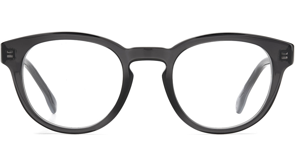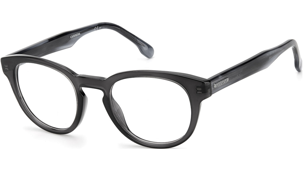 Sobri e audaci al tempo stesso, questi occhiali da vista attualizzano la montatura tonda con una costruzione in robusto acetato. Il profilo leggermente squadrato è caratterizzato dal ponte a chiave d’ispirazione retrò, che poggia comodamente sul naso, e dalle iconiche placche con il logo Carrera sulle tempie. Da notare l’anima in metallo lungo la parte interna delle aste.
