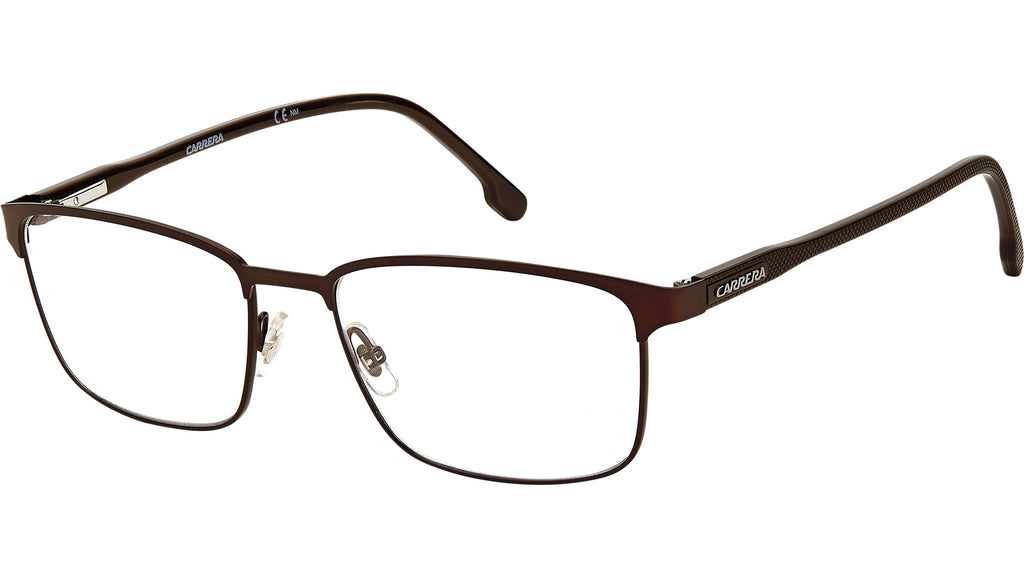 Occhiali da vista Carrera modello 262 colore 09Q brown. Dal design essenziale e dinamico, in perfetto stile Carrera – questi occhiali da vista uniscono l’elegante frontale rettangolare in metallo alle aste dall’appeal sportivo, accentuate con l’iconica texture a griglia dal discreto effetto 3D. La leggera montatura in acciaio è rifinita con la firma del brand su ogni tempia ed è completata da cerniere flessibili per un fit personalizzato.