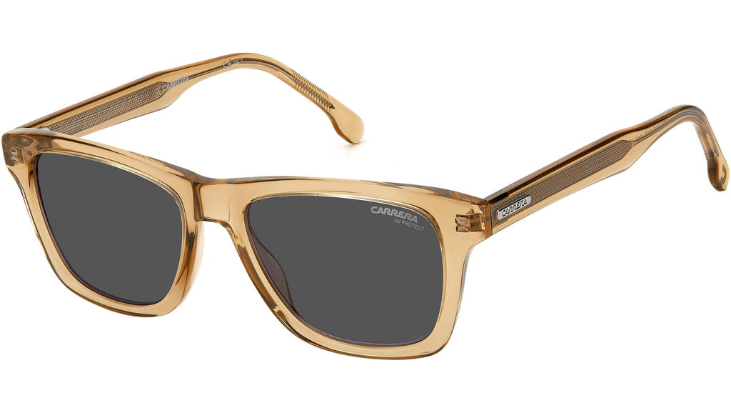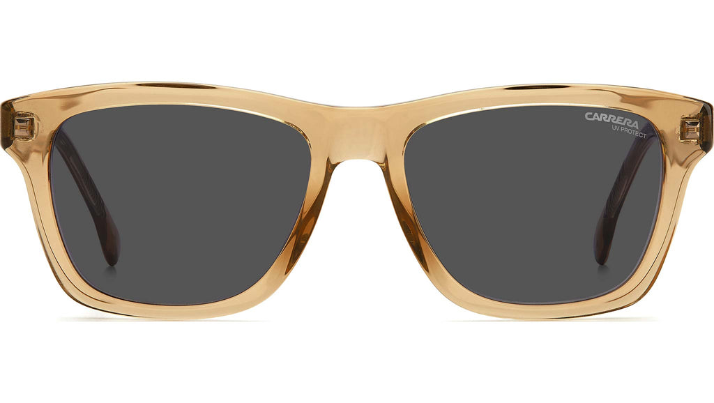 Ispirati alle autentiche montature vintage, questi occhiali da sole da uomo aggiornano la classica silhouette squadrata con un tocco sportivo. La robusta costruzione in acetato amplifica la forma e la texture della montatura rettangolare, mentre i dettagli logati Carrera e l’inconfondibile anima in metallo, visibile all’interno delle aste, completano il design con un’intrigante nota di carattere.