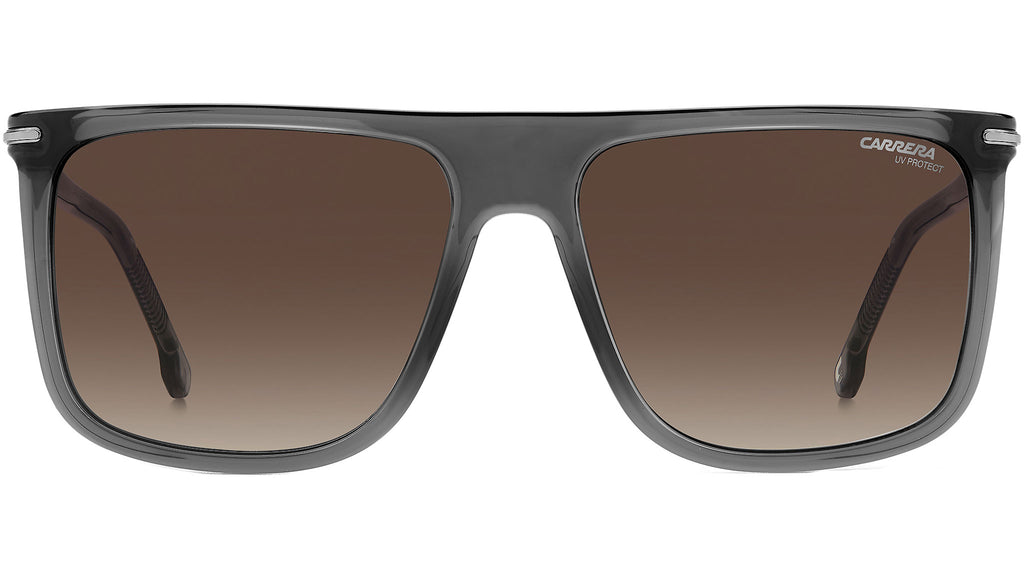 With their classic square shape, toughened up by a flat brow bar, these sunglasses are both characterful and versatile. The minimal rectangular frames are crafted from injection-molded polyamide and finished with Carrera’s signature detailing: the trademark ‘grid’ texture on the inner arms and the intricate design of the temples, inspired by the brand’s distinguished heritage. A set of interchangeable flex hinges guarantees comfort, durability, and easy maintenance.