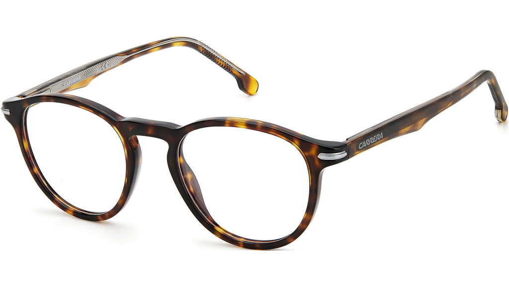 Defined by their classic shape, flawless craftsmanship, and distinctive accents, these prescription glasses are the perfect everyday pair. The subtly rounded pantos silhouette is sculpted from lightweight acetate and finished with Carrera’s expert detailing: the signature ‘grid’ texture adorning the inner arms and the new design of the temples, inspired by the archives. A set of interchangeable flex hinges guarantees comfort, durability, and easy maintenance.