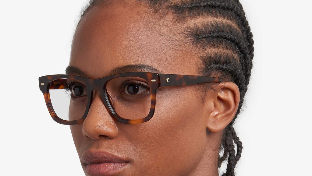 Occhiali da vista Carrera modello 3021 colore 05L havana. La collezione eyewear donna di Carrera si arricchisce di questi occhiali da vista, perfetti da sfoggiare giorno dopo giorno. La forma squadrata e i volumi importanti sono accompagnati da una palette colori elegante, che include le trasparenze. Non mancano i dettagli gioiello, quali il rivetto sul frontale e la “C” in rilievo sulle aste.