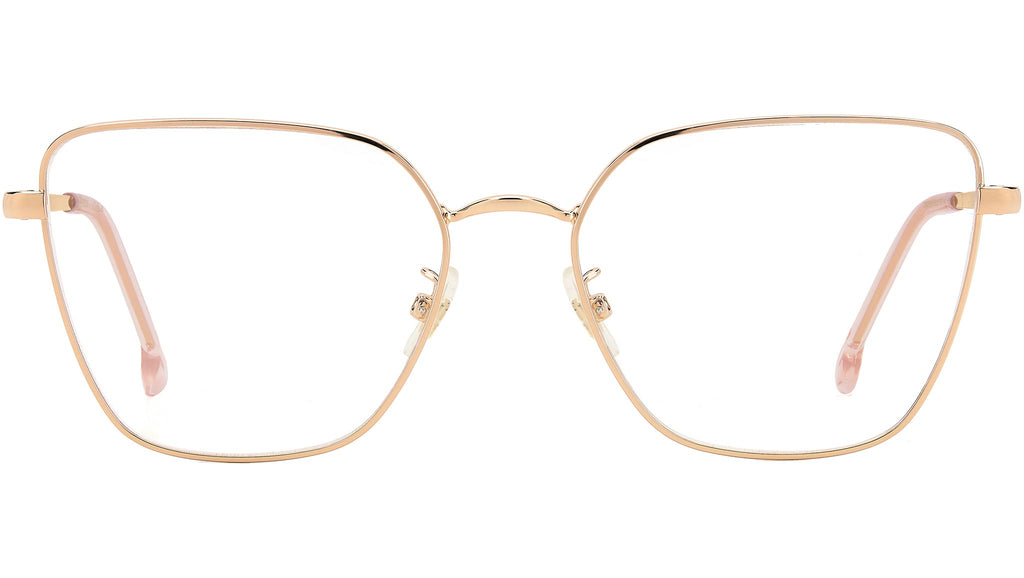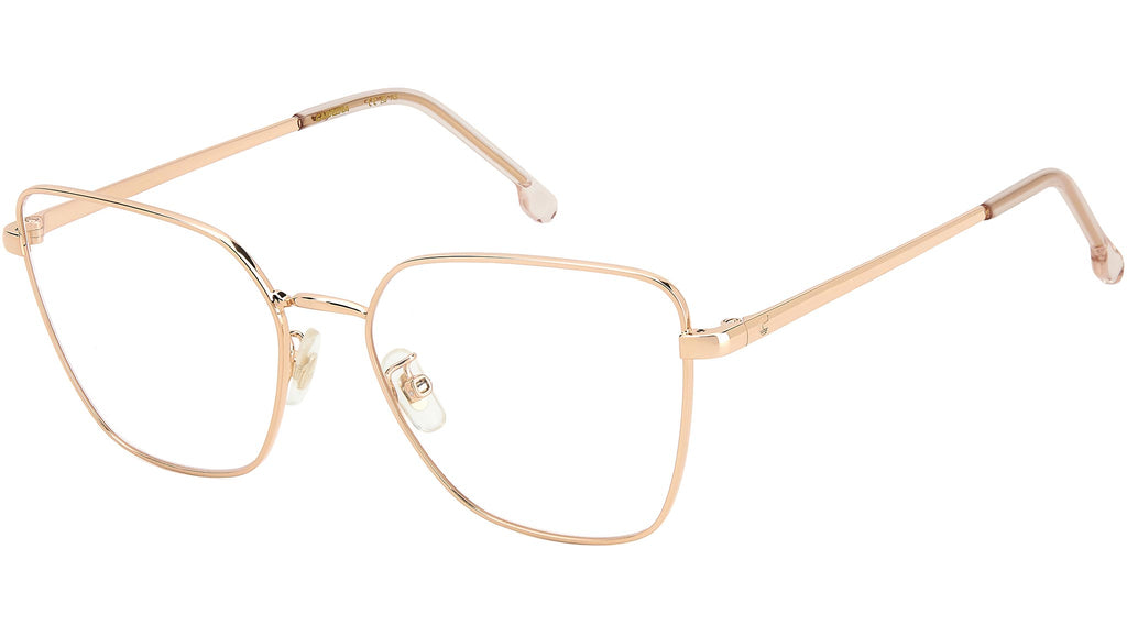 Occhiali da vista Carrera modello 3022 colore DDB gold copper. Occhiali da vista dallo stile raffinato ma sempre anticonvenzionale, nella migliore tradizione Carrera. La montatura è interamente in metallo, corredata da pratici naselli e terminali in acetato trasparenti o con colorazione a contrasto. Carrera firma il modello con la sua discreta ma iconica “C” e lo propone in diverse varianti colore, anche con profilo colorato sul frontale.