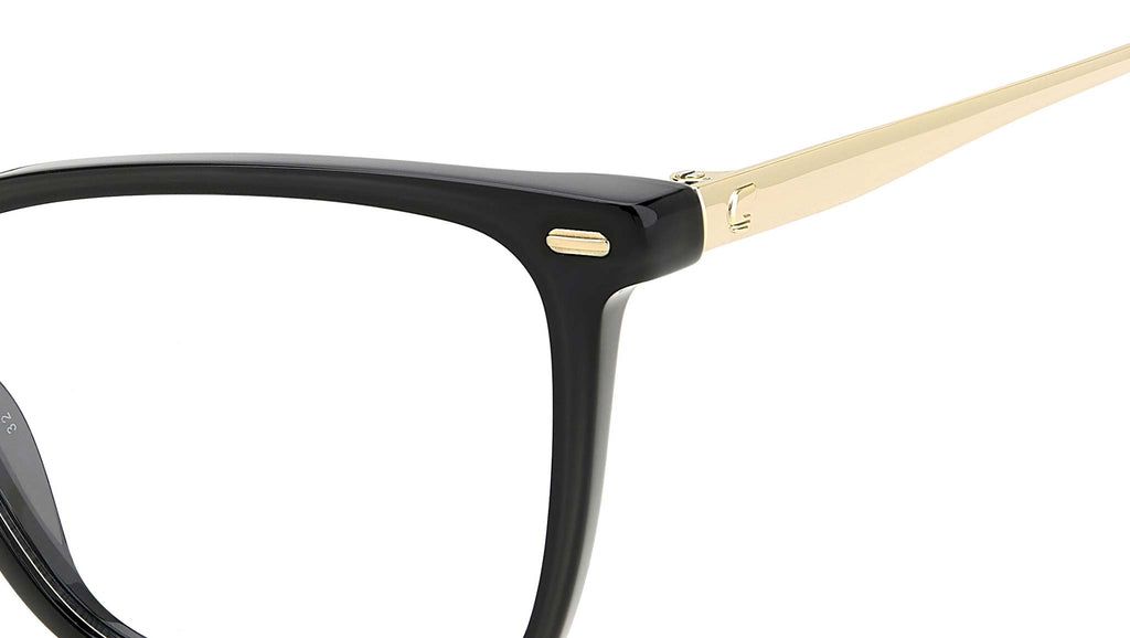 Occhiali da vista Carrera modello 3024 colore 807 black. Per la donna che ama le linee pure, questi occhiali da vista Carrera sono la scelta giusta da fare. Sono realizzati con una squisita combinazione di materiali: acetato per il frontale e metallo per le aste con terminali in coordinato. Carrera non rinuncia ad esprimere la sua personalità distintiva e aggiunge il rivetto metallico che correda il frontale oltre alla piccola “C” laserata sulle aste.