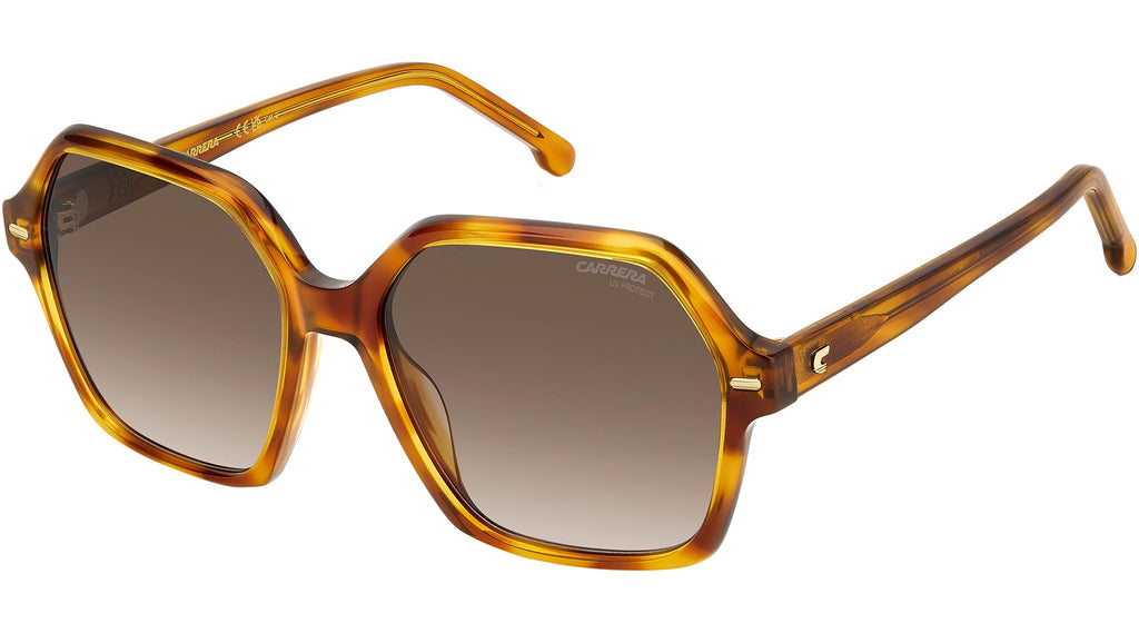 Occhiali da sole Carrera modello 3026/S colore 086 HA havana. Carrera sceglie geometrie soft e ispirazioni retrò per questi occhiali da sole donna. Gli elementi tipici del brand diventano gioielli che impreziosiscono la montatura: i rivetti in metallo dorato sul frontale e la “C” in rilievo sulle aste. La struttura è in acetato, declinata in diverse opzioni colore che includono sfumature, trasparenze e havana colorata. Le lenti sono personalizzabili con la gradazione preferita, disponibili anche in versione specchiata.