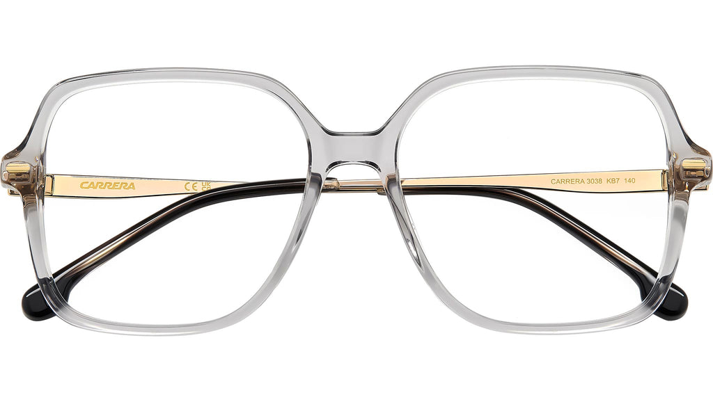 Occhiali da vista Carrera 3038 KB7 donna con montatura quadrata in acetato grigio e lenti demo. Un'estetica decisamente contemporanea caratterizza un occhiale da vista Carrera per donna destinati a farsi ricordare a lungo. La silhouette squadrata è realizzata in acetato e proposta nelle nuance più neutre ma anche havana colorata ed effetto corno, sempre femminili e alla moda. Completano il modello le aste slanciate in metallo con la “C” Carrera laserata e i terminali in acetato in perfetta rima cromatica con il frontale. Linea: Flag. Codice modello: 108361. Codice colore: KB7. Rivenditore autorizzato Carrera online. Gli occhiali vengono consegnati con custodia e accessori originali e sono coperti dalla garanzia ufficiale di 12 mesi del produttore.