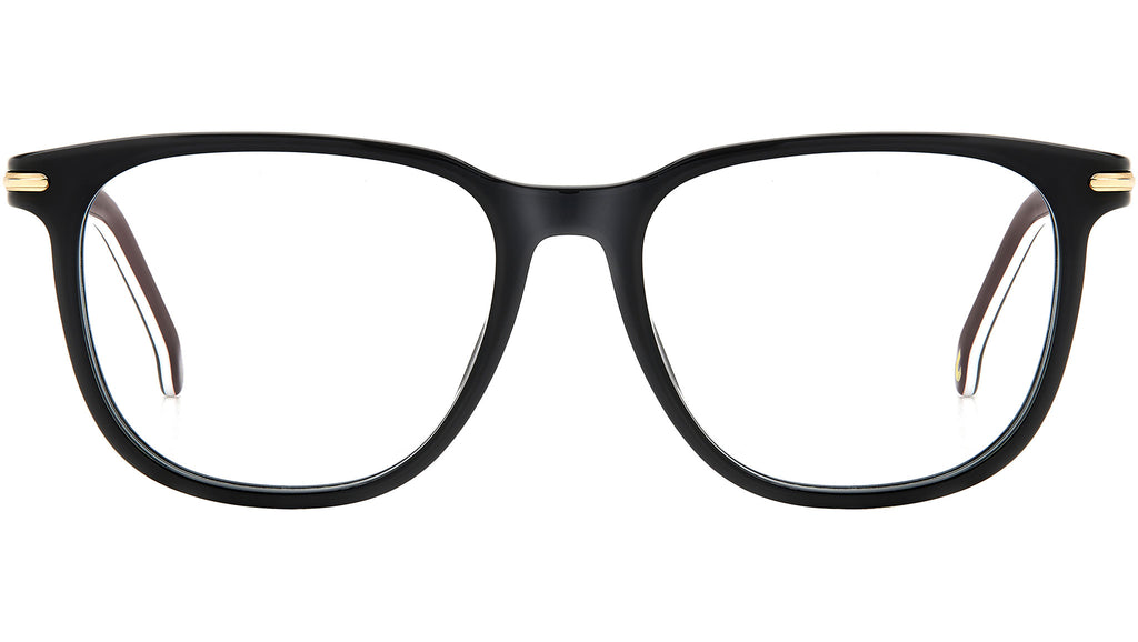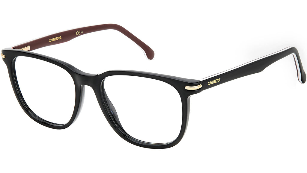 Occhiali da vista Carrera modello 308 colore M4P striped black. Un’intramontabile forma squadrata per questi occhiali da vista della collezione più elegante di Carrera. Sulla montatura in acetato spiccano gli inserti metallici, che richiamano una “C” orizzontale e collegano il frontale alle aste a pinna: elementi propri della storia Carrera. Il modello veste alla perfezione grazie alle cerniere flessibili intercambiabili. La palette colori è classica, disponibile anche nella versione con aste multistrato per un effetto cromatico che non sbaglia mai.