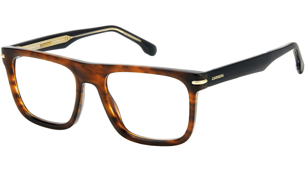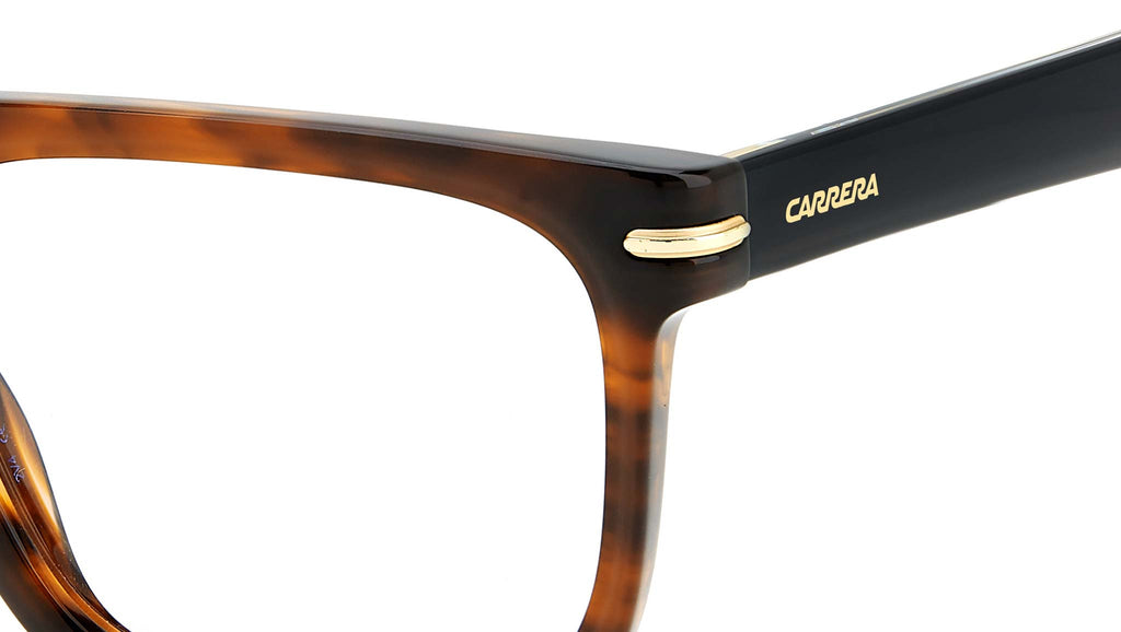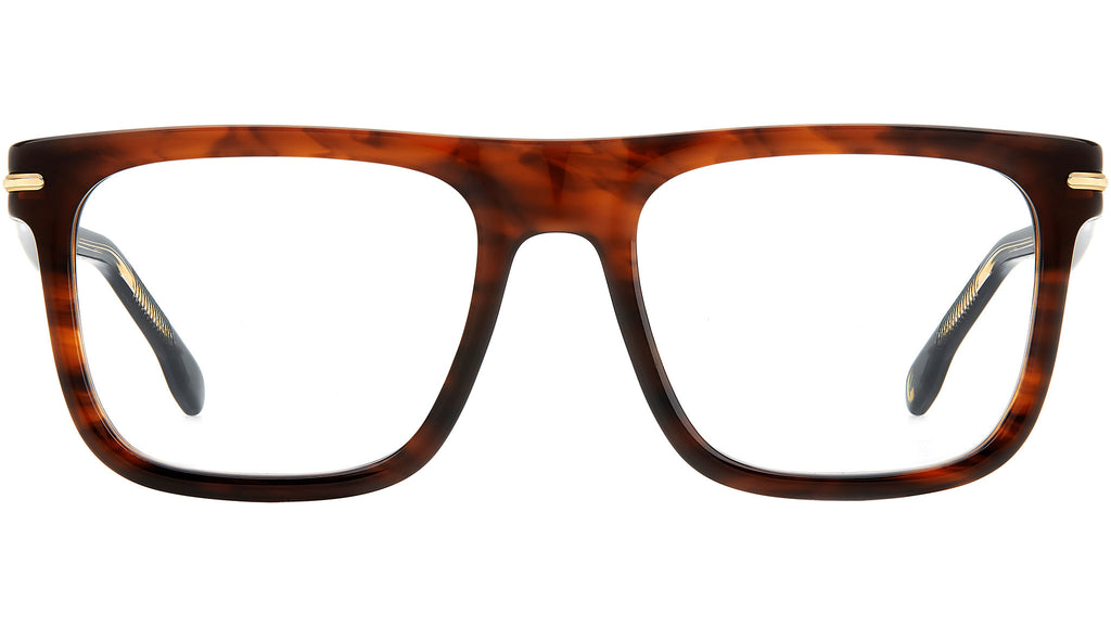 Occhiali da vista Carrera modello 312 colore 086 havana. Destinati a riscrivere le regole, questi occhiali da vista accostano riferimenti vintage a profili bold rigorosamente attuali. La montatura flat-top è interamente in acetato, proposta anche nella versione con frontale multistrato. Le cromie senza tempo contrastano con l’elemento metallico sul frontale: un vero boost per i look quotidiani. Le aste a pinna omaggiano la storia del brand, ancora più incisive grazie all’anima a vista, sempre firmate dal logo Carrera.