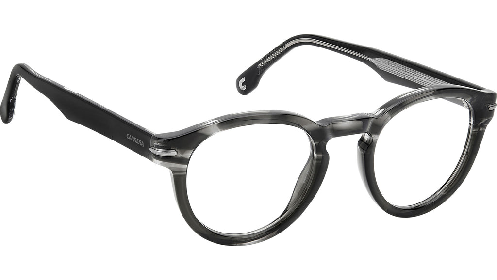 Occhiali da vista Carrera modello 313 colore 2W8 grey horn. Giocano sul contrasto tra allure vintage e un carattere deciso questi occhiali da vista unisex Carrera. Combinano infatti una silhouette pantos a una costruzione in acetato dai volumi audaci. Da notare la placca in metallo con la “C” Carrera in rilievo, così come l’anima a vista sul lato interno delle aste a pinna. Il modello è declinato nelle tonalità classiche come nero e havana, anche con trattamento multistrato sul frontale, e sempre firmato dall’immancabile logo Carrera.