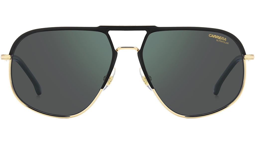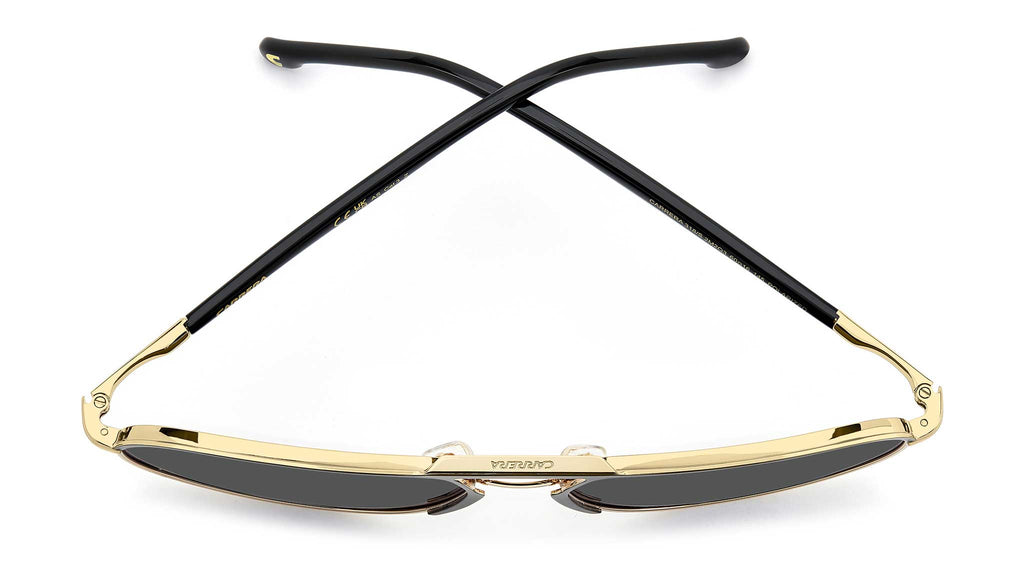 Occhiali da sole Carrera modello 318/S colore 2M2 Q3 black gold. Questi occhiali da sole Carrera regalano un look autentico a chi cerca un accessorio indelebile alle mode passeggere. La caratteristica forma pilot con doppio ponte brandizzato celebra la tradizione Carrera, insieme alle aste a pinna con terminali lunghi in acetato, anche multistrato. Da notare il dettaglio in rilievo, proprio lì dove l’asta incontra il frontale. Il modello può montare lenti graduate, ed è disponibile anche con frontale bi-color, lenti polarizzate e ultrapolar.