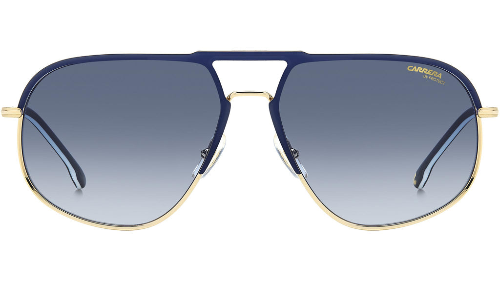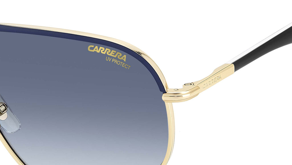 Occhiali da sole Carrera modello 318/S colore KY2 08 blue gold. Questi occhiali da sole Carrera regalano un look autentico a chi cerca un accessorio indelebile alle mode passeggere. La caratteristica forma pilot con doppio ponte brandizzato celebra la tradizione Carrera, insieme alle aste a pinna con terminali lunghi in acetato, anche multistrato. Da notare il dettaglio in rilievo, proprio lì dove l’asta incontra il frontale. Il modello può montare lenti graduate, ed è disponibile anche con frontale bi-color, lenti polarizzate e ultrapolar.