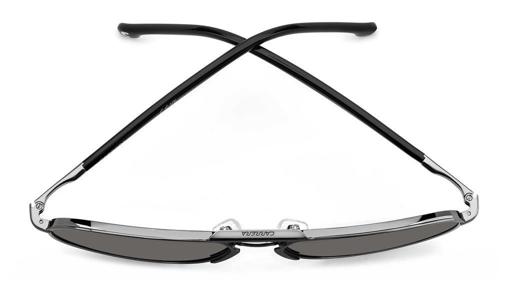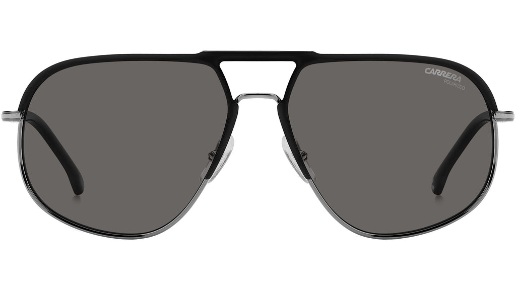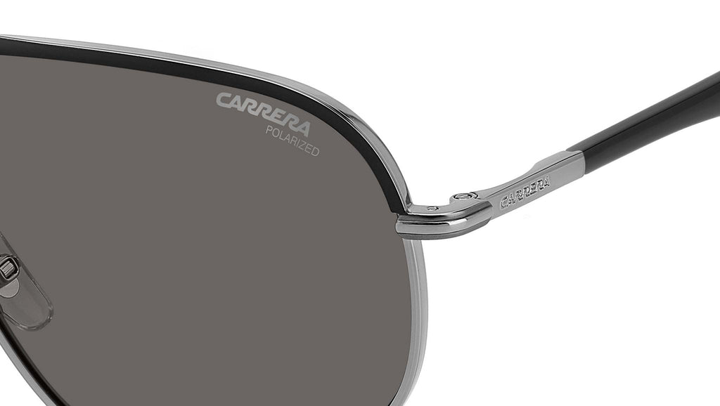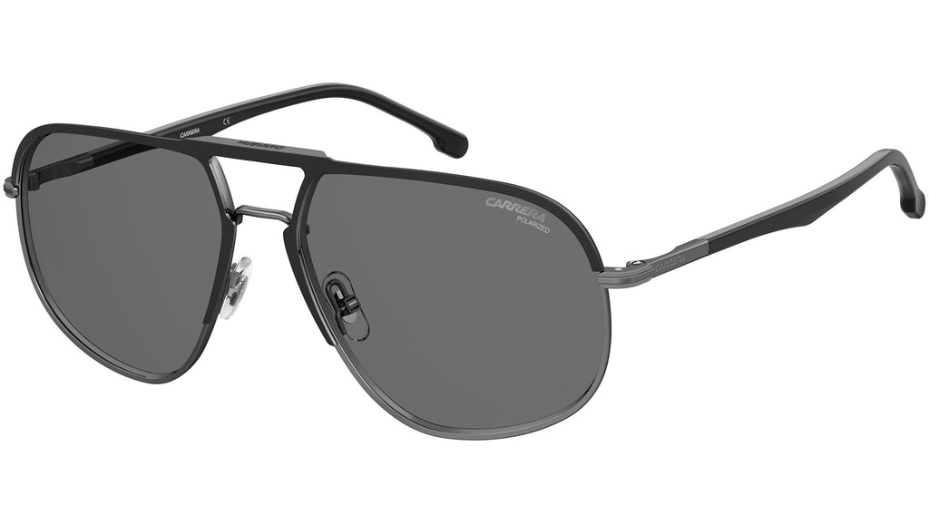 Occhiali da sole Carrera modello 318/S colore RZZ M9 matte black dark ruthenium. Questi occhiali da sole Carrera regalano un look autentico a chi cerca un accessorio indelebile alle mode passeggere. La caratteristica forma pilot con doppio ponte brandizzato celebra la tradizione Carrera, insieme alle aste a pinna con terminali lunghi in acetato, anche multistrato. Da notare il dettaglio in rilievo, proprio lì dove l’asta incontra il frontale. Il modello può montare lenti graduate, ed è disponibile anche con frontale bi-color, lenti polarizzate e ultrapolar.