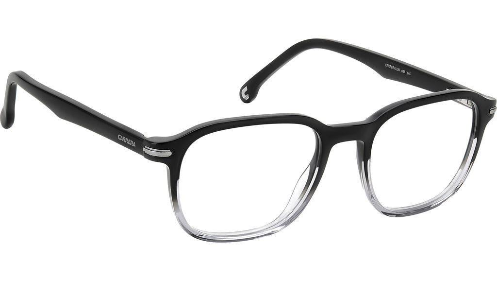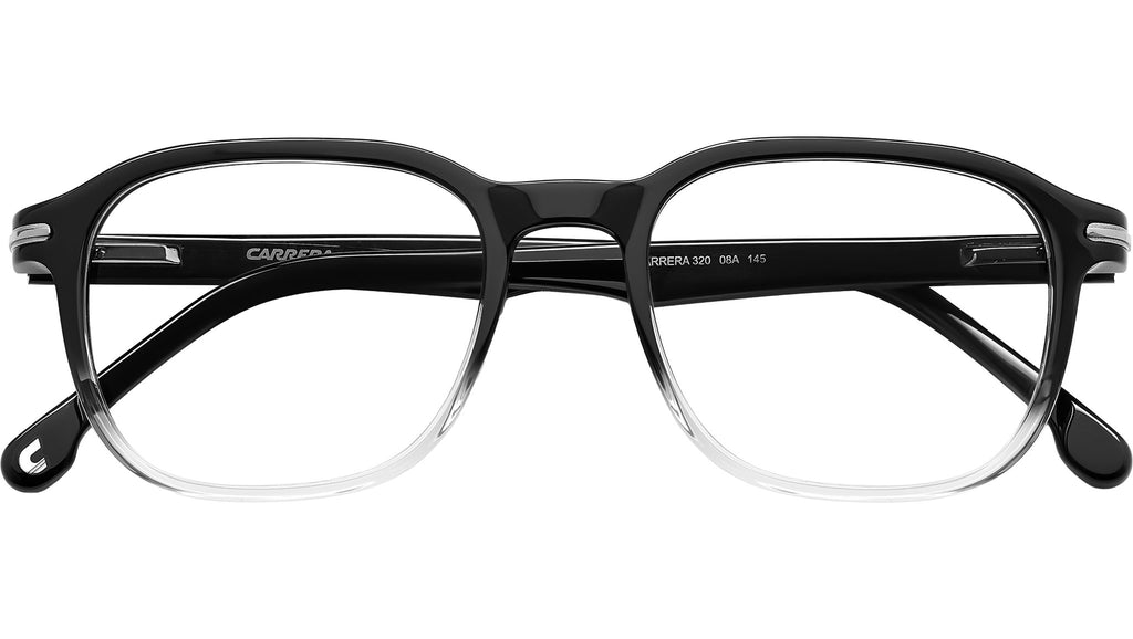 Occhiali da vista Carrera modello 320 colore 08A black grey. Tornano all’essenza dello spirito Carrera questi occhiali da vista, essenziali ma non per questo meno distintivi o meno curati. La loro profilo tondeggiante è un evergreen che non rinuncia a distinguersi: si nota infatti sul frontale l’inserto metallico con la “C” in rilievo, vera signature Carrera. Le cerniere flessibili assicurano una calzata comoda e stabile. Il modello è disponibile in versione multistrato, trasparente e sfumata.