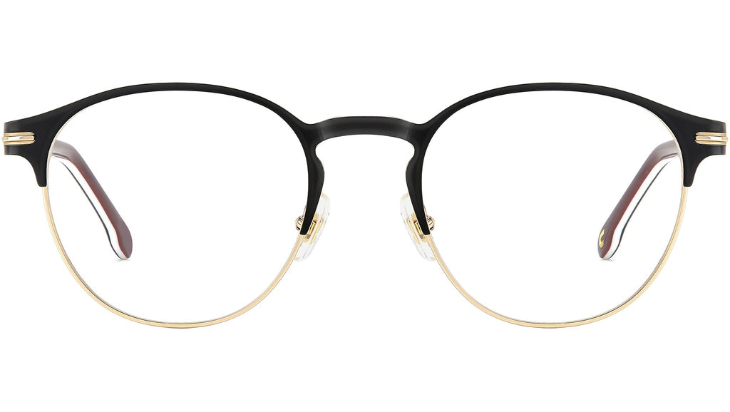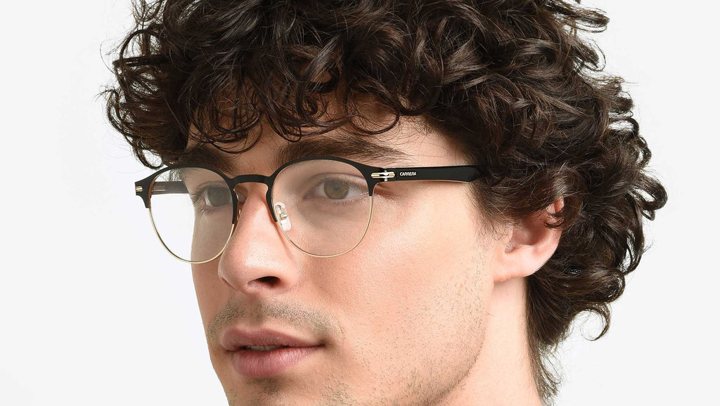 Occhiali da vista Carrera modello 322 colore I46 matte black gold. Il meglio dell’heritage Carrera si concentra in questi occhiali da vista, pronti a vestire il volto degli estimatori. Spicca il frontale in metallo dalla forma pantos con ponte a chiave, pratici naselli e la “C” scolpita in rilievo ai lati delle lenti. La silhouette delle aste è ripresa agli archivi del brand e aggiornata con cerniere flessibili. Il modello è disponibile anche con frontale bi-color e aste multistrato.