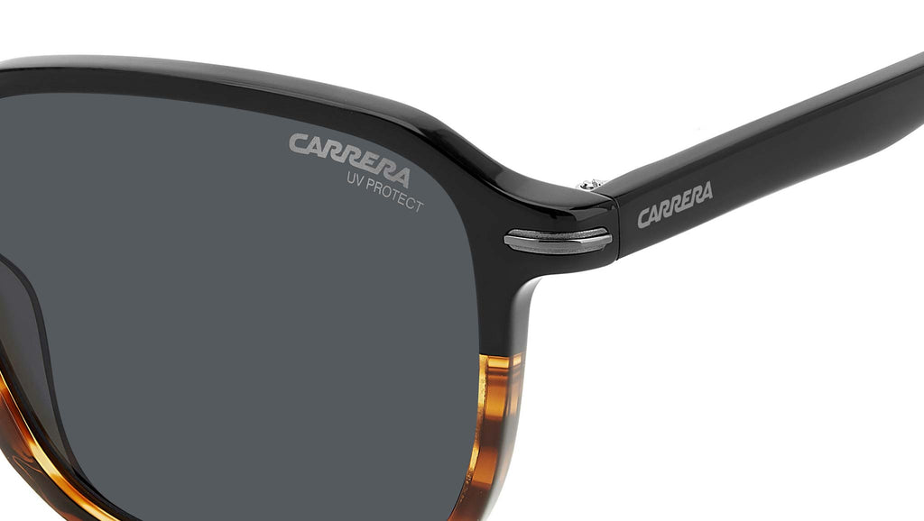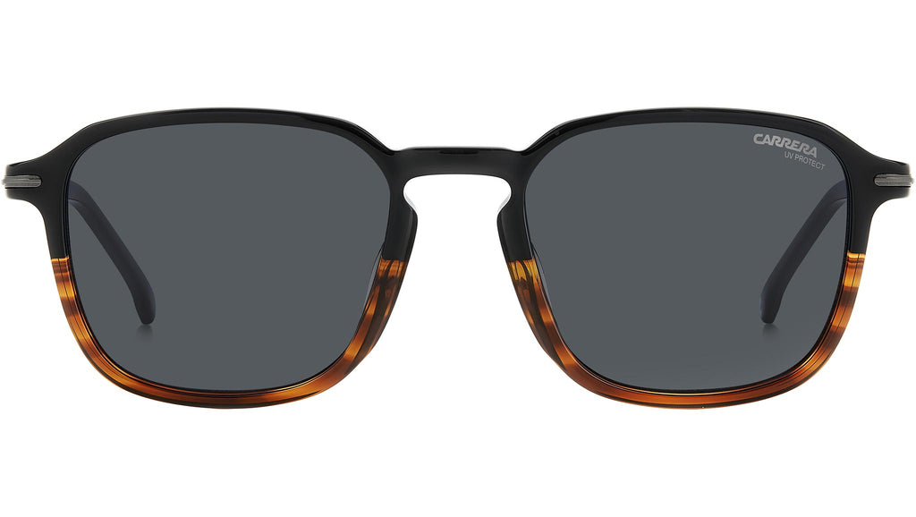 Occhiali da sole Carrera modello 328/S colore WR7 IR black havana. Estetica e funzionalità convivono in questi occhiali da sole Carrera unisex. Il frontale è realizzato in acetato leggero, i profili sottili sono lavorati in una silhouette squadrata con ponte a chiave. Anche le aste sono slim, scolpite nella forma a pinna tipica Carrera. Le cromie proposte includono opzioni trasparenti, bi-color o multistrato a richiamare la bandiera Carrera. Il modello può montare lenti graduate.
