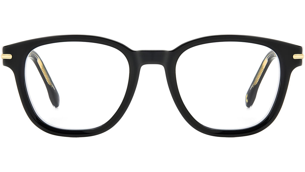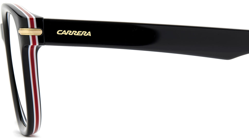 Occhiali da vista Carrera modello 331 colore 807 black. Volumi notevoli sapientemente calibrati definiscono il carattere di questi occhiali da vista Carrera. Si fa notare la montatura in acetato, esaltata dall’inserto metallico nella forma di una “C” orizzontale. Le aste a pinna sono tipiche Carrera, qui rivisitate in chiave moderna, sempre firmate dal logo stampato. Sarà un piacere scegliere tra le diverse proposte cromatiche, anche multistrato o trasparenti con anima a vista.