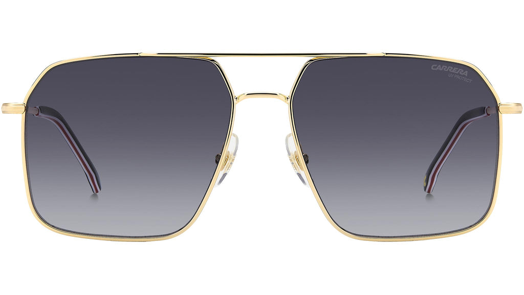 Occhiali da sole Carrera modello 333/S colore J5G 9O gold. Occhiali da sole navigator con doppio ponte, signature iconica Carrera. Si fanno amare per la loro leggerezza e versatilità. Il frontale è in acciaio inossidabile e può montare lenti graduate. Le aste sono in metallo, ancora più confortevoli grazie ai terminali in acetato. Tutta la struttura vanta linee sottili ma resistenti all’uso quotidiano. La visuale è nitida grazie alle lenti da sole, ancora più performanti in versione polarizzata oppure ultrapolar.