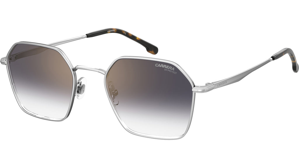 Occhiali da sole Carrera 334/S 010 FQ uomo con montatura rettangolare in metallo palladio e lenti demo. Connubio tra le ultime tendenze e lo stile timeless Carrera, un occhiale da sole presentano delicate geometrie e profili essenziali. Il frontale è in acciaio inossidabile, materiale noto per la sua leggerezza, plasmato in un delicato esagono. Il mood minimale è rimarcato dalle aste a pinna, firmate dal logo laserato e completate da terminali in acetato. Disponibile nella nuova variante oro opaco, oppure con lenti specchiate. Può montare lenti graduate. Linea: Signature. Codice modello: 206764. Codice colore: 010 FQ. Rivenditore autorizzato Carrera online. Gli occhiali vengono consegnati con custodia e accessori originali e sono coperti dalla garanzia ufficiale di 12 mesi del produttore.