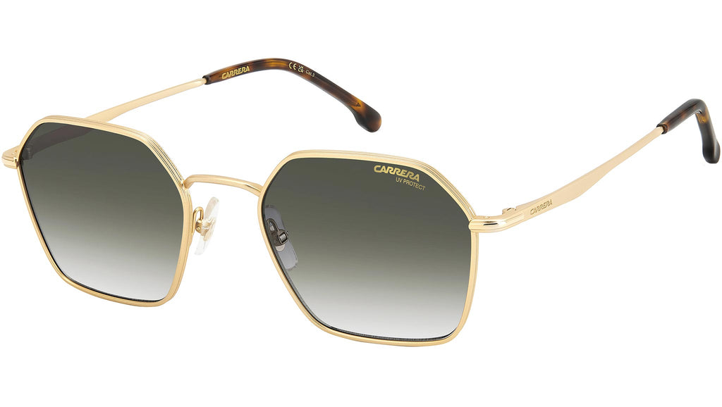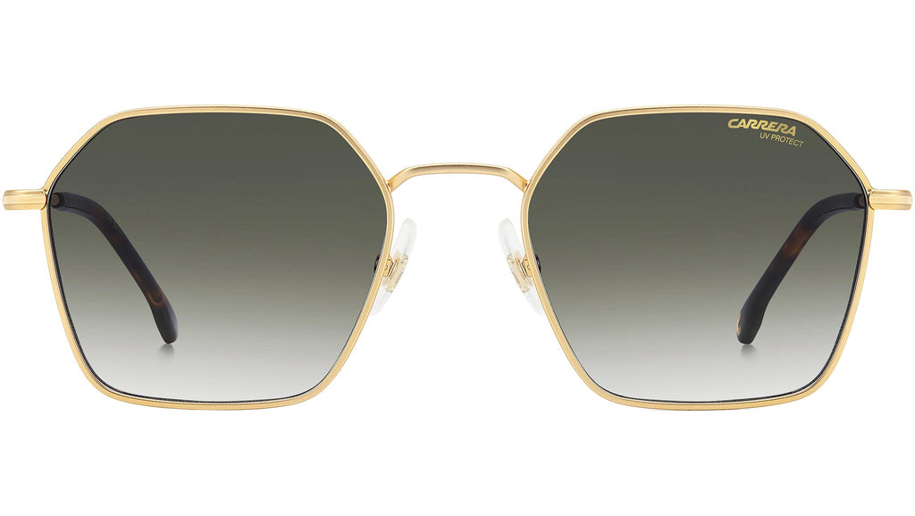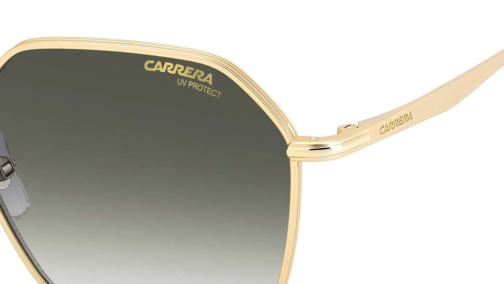 Occhiali da sole Carrera modello 334/S colore AOZ 9K matte gold. Connubio tra le ultime tendenze e lo stile timeless Carrera, questi occhiali da sole presentano delicate geometrie e profili essenziali. Il frontale è in acciaio inossidabile, materiale noto per la sua leggerezza, plasmato in un delicato esagono. Il mood minimale è rimarcato dalle aste a pinna, firmate dal logo laserato e completate da terminali in acetato. Disponibile nella nuova variante oro opaco, oppure con lenti specchiate. Può montare lenti graduate.